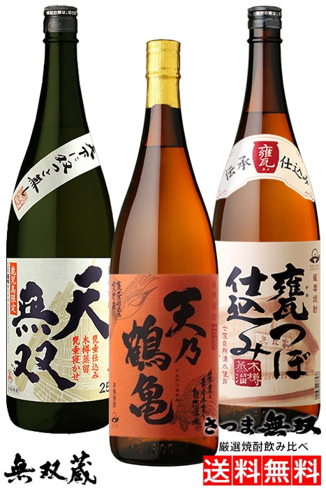【送料無料】焼酎飲み比べ3本セット 天無双 天乃鶴亀 甕つぼ仕込み 各1800ml