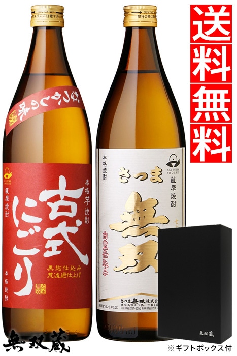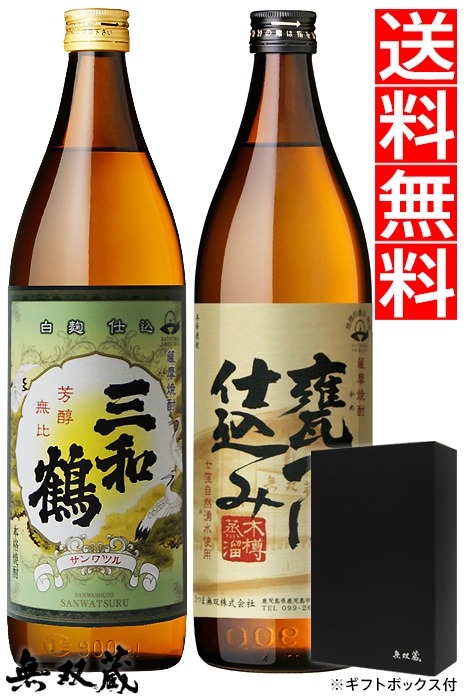 【送料無料】ギフト 本格芋焼酎 飲み比べ 三和鶴 白・甕つぼ仕込み 各25度 各900ml 化粧箱付