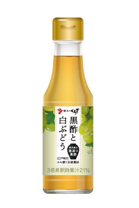 壺づくり純米黒酢「坂元のくろず」に、マスカット(ぶどう)果汁を加え、上品な甘さが楽しめる黒酢飲料です。水割りだけでなく、炭酸割りや牛乳割りでも美味しくお召し上がりいただけます。ヨーグルトやアイスクリームなどにかけて、 デザートソースとしてもお使いください。