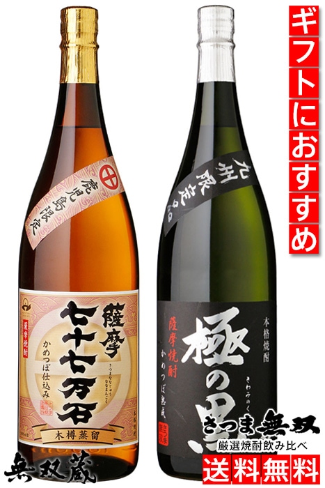 【送料無料】芋焼酎ギフト 薩摩七十七万石・極の黒 飲み比べ 各25度 各1800ml 2本セット 包装無料